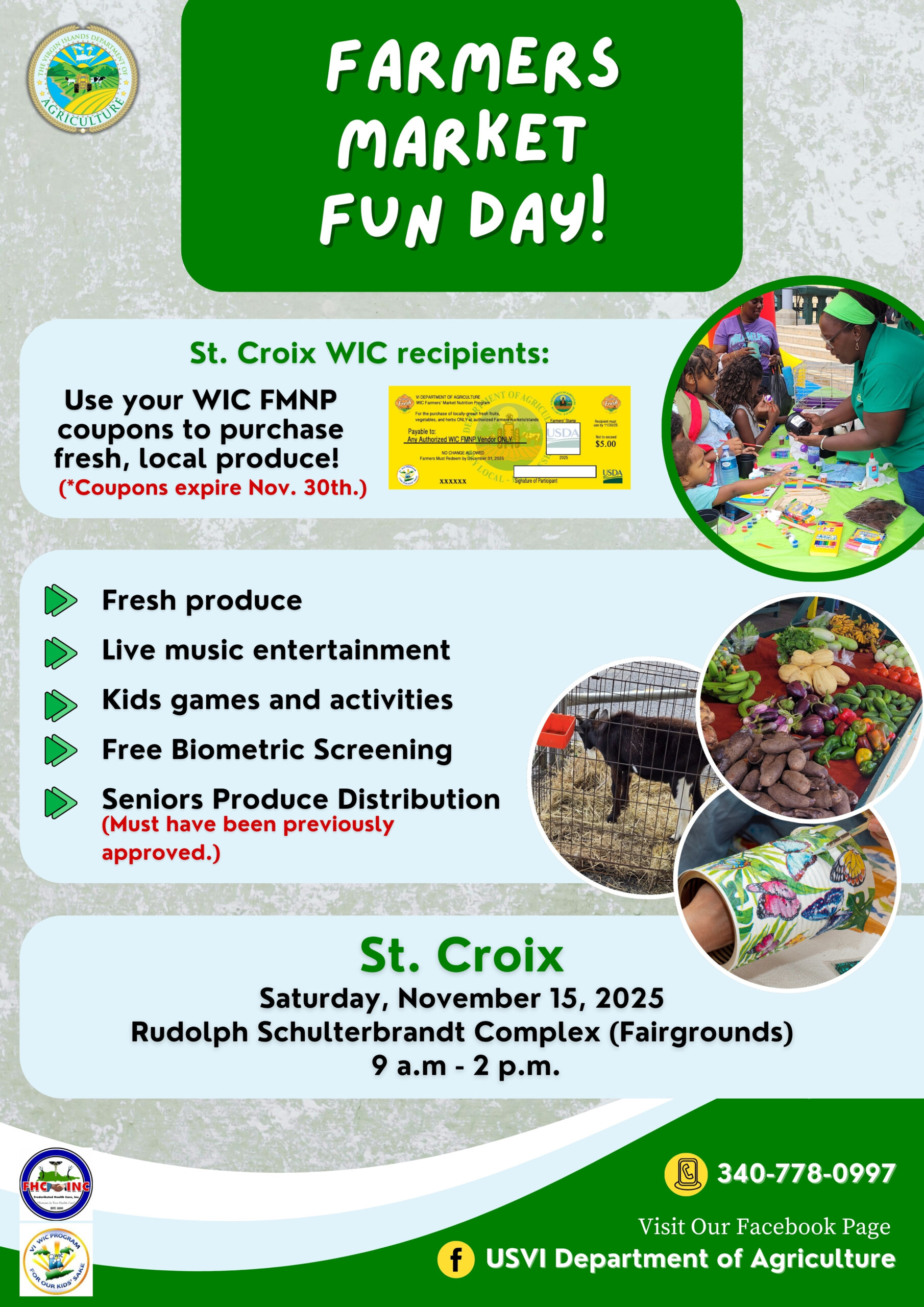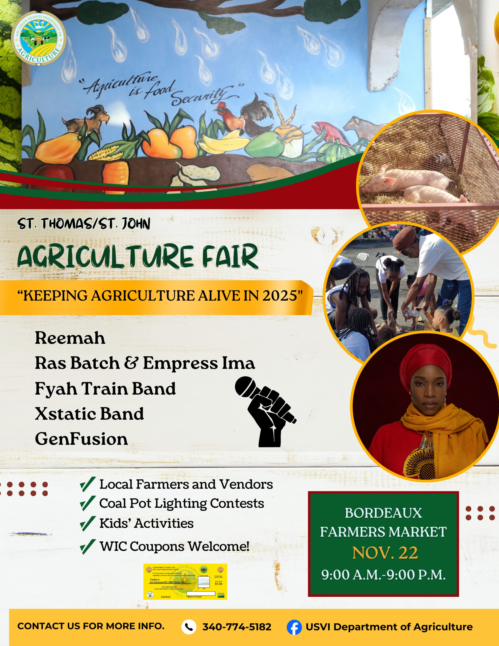 (Please be advised: The St. Thomas VIDA office phone lines are down until further notice. Community members will be informed when service is repaired. We apologize for any inconvenience this may cause. To contact the VI Department of Agriculture, please contact the St. Croix office at 340-778-0997 ext. 3322 or ext. 3323.)